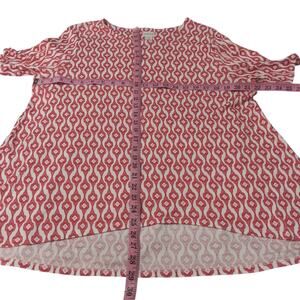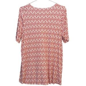 CHICO'S 3 Long Tunic Top Modal Shirt XL Short Sleeves Soft Red White Geometric
