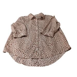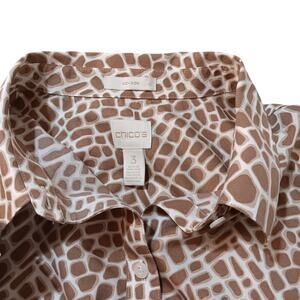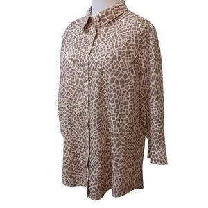 CHICO'S 3 No Iron Shirt Blouse Top 16 XL Casual Office Travel Camel Animal Print