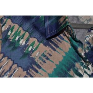 Embrace a bold and unique style with this CHICO'S abstract patterned short sleeve button-down shirt. Featuring an eye-catching blend of blues, greens, and neutrals, this shirt is perfect for adding a pop of color to your wardrobe. The button-down design and short sleeves make it a versatile choice for both casual and semi-formal occasions. Crafted with care, this shirt ensures comfort and ease of movement. Ideal for pairing with your favorite jeans or slacks, it’s a must-have for anyone looking to make a fashion statement. Elevate your everyday look with this stylish and distinctive piece from CHICO'S.