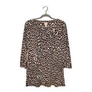 CHICO'S $68 Leopard Print 3/4 Sleeve Stretch Tunic Top Chico's 0 / US Small