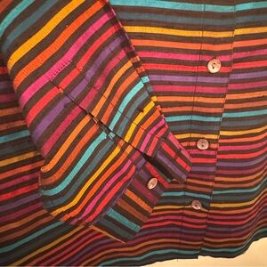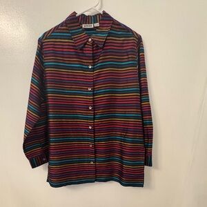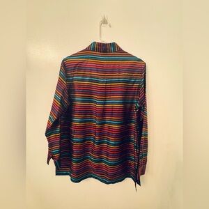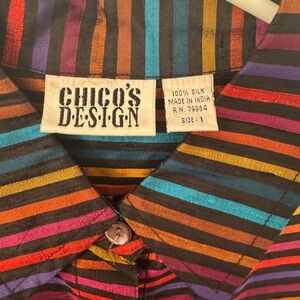 CHICO'S Shirt Size 1 Colorful Stripe 100% Silk Long Sleeve Button Down Vintage