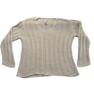 CHICO’S 85% SILK Tan Ribbed Knit Sweater Minimalist Capsule Wardrobe Layering Lg