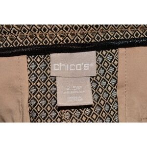 Elevate your ensemble with the CHICO'S Square Print Jacquard Skinny Ankle Pant in Gold/Black. These pants, sized 2.5P (US 14P), boast a sophisticated square print jacquard pattern that adds a touch of glamour to your look. With a pull-on style and elastic waist, they offer both comfort and style, making them perfect for all-day wear. The ankle-length design gives them a modern silhouette that pairs well with heels or flats. Whether you're headed to the office or out for a night on the town, these pants are sure to make a statement.