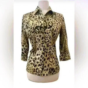 Women’s Additions by Chico’s brown leopard/alligator button up blouse.
