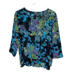 CHICOS Additions by Size 2 US L Floral Print Sheer Chiffon Top Sequin Bead Trim