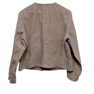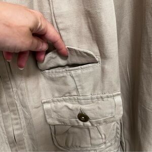 Tags: neutral fall summer spring outdoors camping hiking cargo natural fibers sustainable breathable comfort utility granola grandma gorp linen tan beige capsule wardrobe versatile minimalist quiet luxury old money classic classy transitional weather fall zip front collarless bomber jacket shape