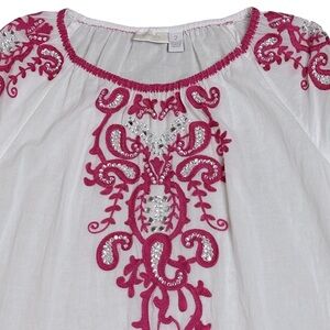 CHICO'S Anelle Blouse 3/4 sleeves Embroidered Embellished White Fuchsia Like new