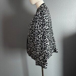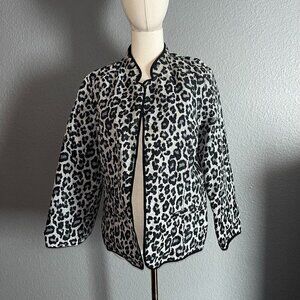 CHICO'S Animal Leopard Print - Black & Gray Sheer Lined Short Open Front Mobwife