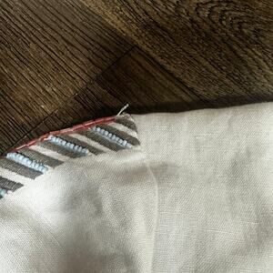 The only flaw found is a missing coral colored bead and loose thread on the left shoulder. The embroidery is in an olive green, while the beading is baby blue and light coral. Comes from pet/smoke free shop. A8 #0175