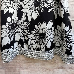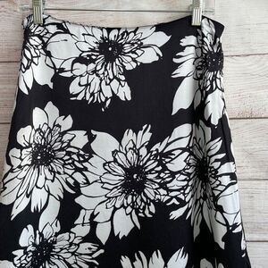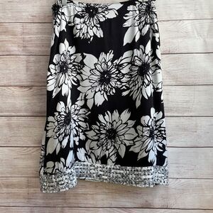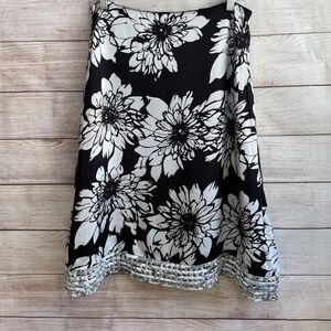 EXCELLENT CONDITION CHICOS BLACK AND WHITE FLORAL SKIRT WITH LATTICE HEM