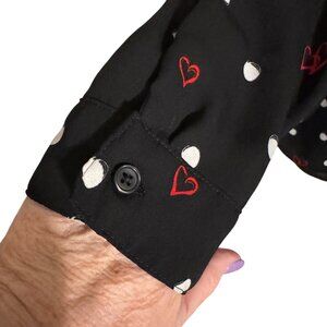 CHICO'S BLACK BLOUSE W/WHITE DOT & RED HEARTS MEDIUM