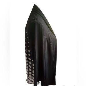 CHICO'S BLACK OPEN FRONT Polka-Dot Chiffon Back TOP JACKET Cardigan Size Medium