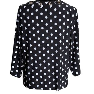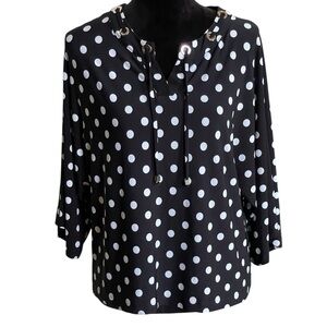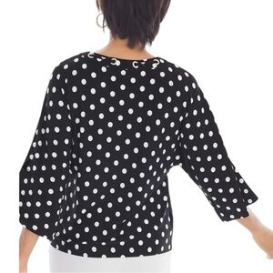 CHICOS BLACK & WHITE POLKA DOT 3/4 SLEEVE BLOUSE SZ SM