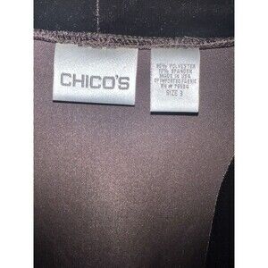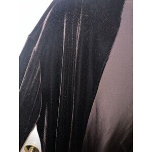 The CHICOS Basic Velvet Sully Jacket in women's size XL is a stylish and versatile outerwear piece perfect for various occasions including travel, parties, or business events. Made from polyester velvet fabric in a solid brown color, this long-sleeve jacket features a hook & eye closure and a whimsical romantic style. Designed by Chico's, this basic jacket exudes dark, whimsigoth aesthetics while offering comfort and sophistication to the wearer. Made in the United States, this jacket is a must-have for any fashionable wardrobe.