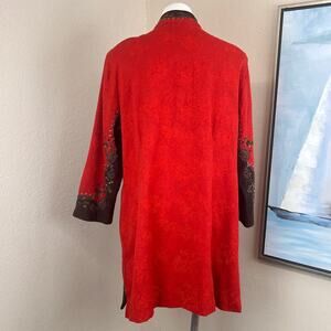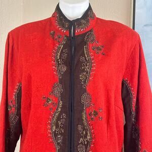 CHICO'S Beaded EMBROIDERED JACKET SZ 3 Red/Orange fully lined cotton