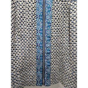 CHICO'S Beige Blue Black Check Tweed Full Zip Fringe Jacket Blazer Size 2 12