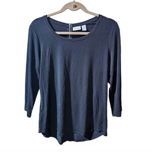 CHICO'S Black 3/4 Sleeve Back‎ Zipper Hi Low Hem Top Shirt - Size 3