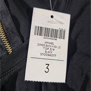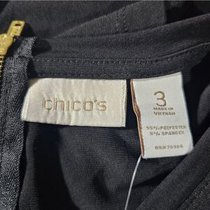CHICO'S Black 3/4 Sleeve Back Zipper Hi Low Hem Top Shirt - Size 3 Gold Back Zipper Polyester/Spandex Blend MSRP $59 New with Tag GR-U