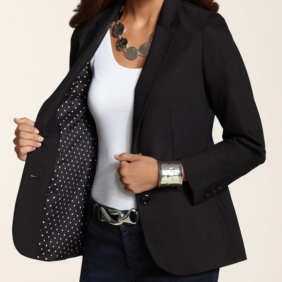 CHICO'S Black Blazer with Polka-Dot Lining - Chico's Size 1 (Size 8-10; Medium)