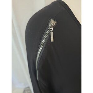 CHICOS Black Cold Shoulder Open Zippers Long Sleeves Stretch T Shirt size 2 L