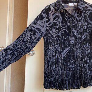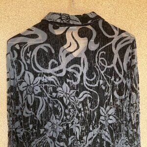 CHICOS | Black Floral Burnout Velvet Crinkle Button Down 3/4 Sleeve Blouse Top