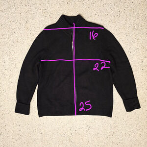 CHICOS Black Full Zippered Classic Cardigan Chicos Size 2 /Meduim / US 12 Crew Neck Cuffed sleeve. Pretty sweater. No Pilling. Like new.