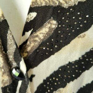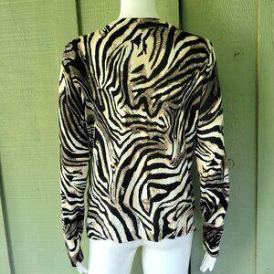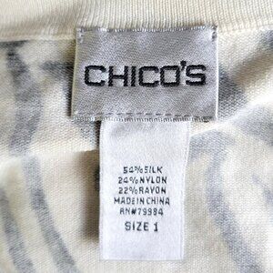 CHICO'S Black Ivory Tiger Striped Silk Blend Knit Cardigan Sz 1 or US 8