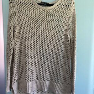 Black Label by Chico's size 2 open weave sparkly gold sweater.