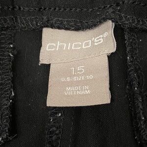 CHICO’S Black Pull-On Ankle Cropped Pant Front Pockets Size 10