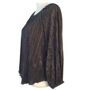CHICOS Black Ribbed Long Sleeve Polyester Blouse - Woman's 1 (M-8)