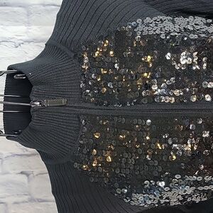 Chico's Black Sequined Part Silk Sweater