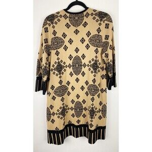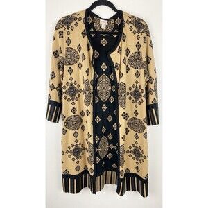 CHICO'S Black Tan Petunia-Placed Duster Open Cardigan - Chico's Size 1 (M)