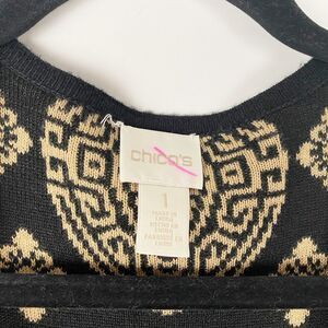 CHICO'S Black Tan Petunia Placed Duster Open Cardigan - Chico's Size 1 (M)