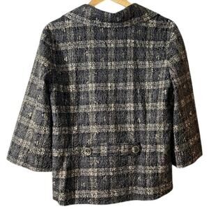 CHICO'S Black Tan Plaid Gold Lace Overlay 3/4 Sleeve Blazer Jacket Size 2 LARGE