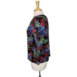 CHICOS Black Tropical Floral Rayon Blend 3/4 Sleeve Top Size Large (2) Pullover