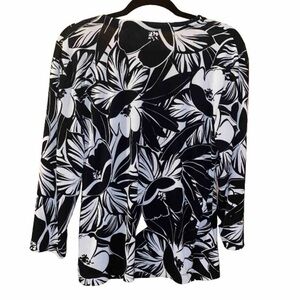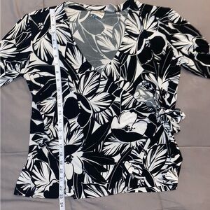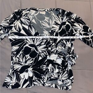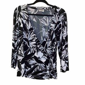 CHICO’S Black & White Faux Wrap Blouse Size 3