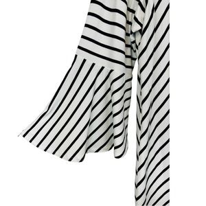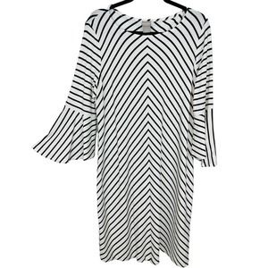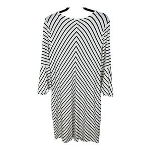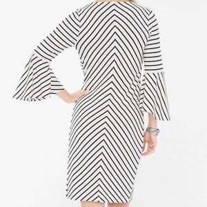 CHICO'S Black & White Striped Dress Flare Long Sleeves