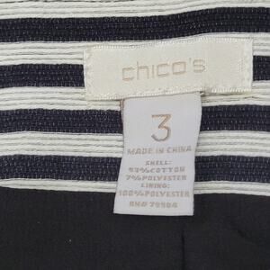 CHICO'S Black and White Striped Cropped Blazer Jacket 3/4 Sleeves Snap Sz 3 (XL)