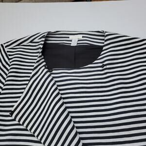 CHICO'S Black and White Striped Cropped Blazer Jacket Textured 3/4 Sleeves Snap Sz 3 (XL)