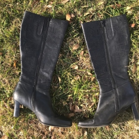 Black Talll Healed Boots W/ Patterned Stitching. Purchased from Chico’s, worn a few times. Great condition. Real leather upper. Priced to sell.