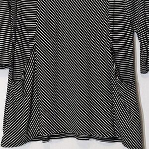 CHICO'S Black w White Stripes Long Flared Knit Tunic Dress w Pockets