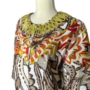 CHICO’S Blazer Jacket Embroidery & Rick Rack Details Size 1 or Women’s 8