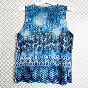 CHICO’S Blue Ikat Print Lace Ruffle Tank Top - Size 2 | Large | 12