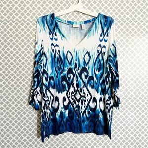 CHICO’S Blue & White Ikat Print Tunic Top, Chico’s Size 1 / M