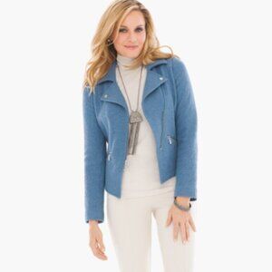 CHICO'S Boiled Wool Moto Jacket Zip Up Blue Grey S 4 6 Women Coat 570187163