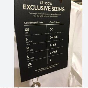 Size Chico's 0 or US women's size Small / 4 / 6 according to included Chico's size chart.