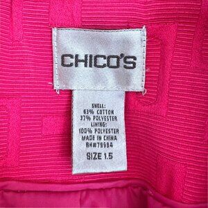CHICOS Bright Hot Pink Geometric 1-Button Cropped Blazer Jacket 1.5 Size 8 10