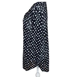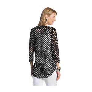 Love a pattern that pops? Try this polka-dot top. With a sheer, mesh lace fabric, it's the perfect layering piece.