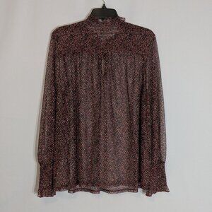 CHICO'S Burgundy Sheer Chiffon Long Sleeve Pullover Top