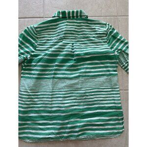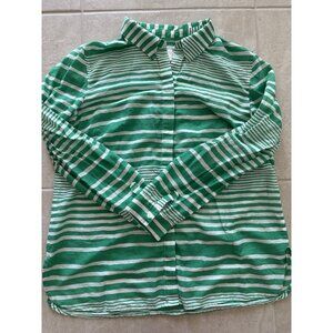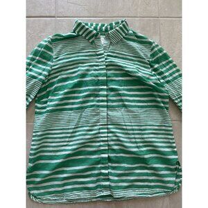 CHICO'S Button Down Shirt Womens Size 2 100% Cotton Green White Stripe Resort